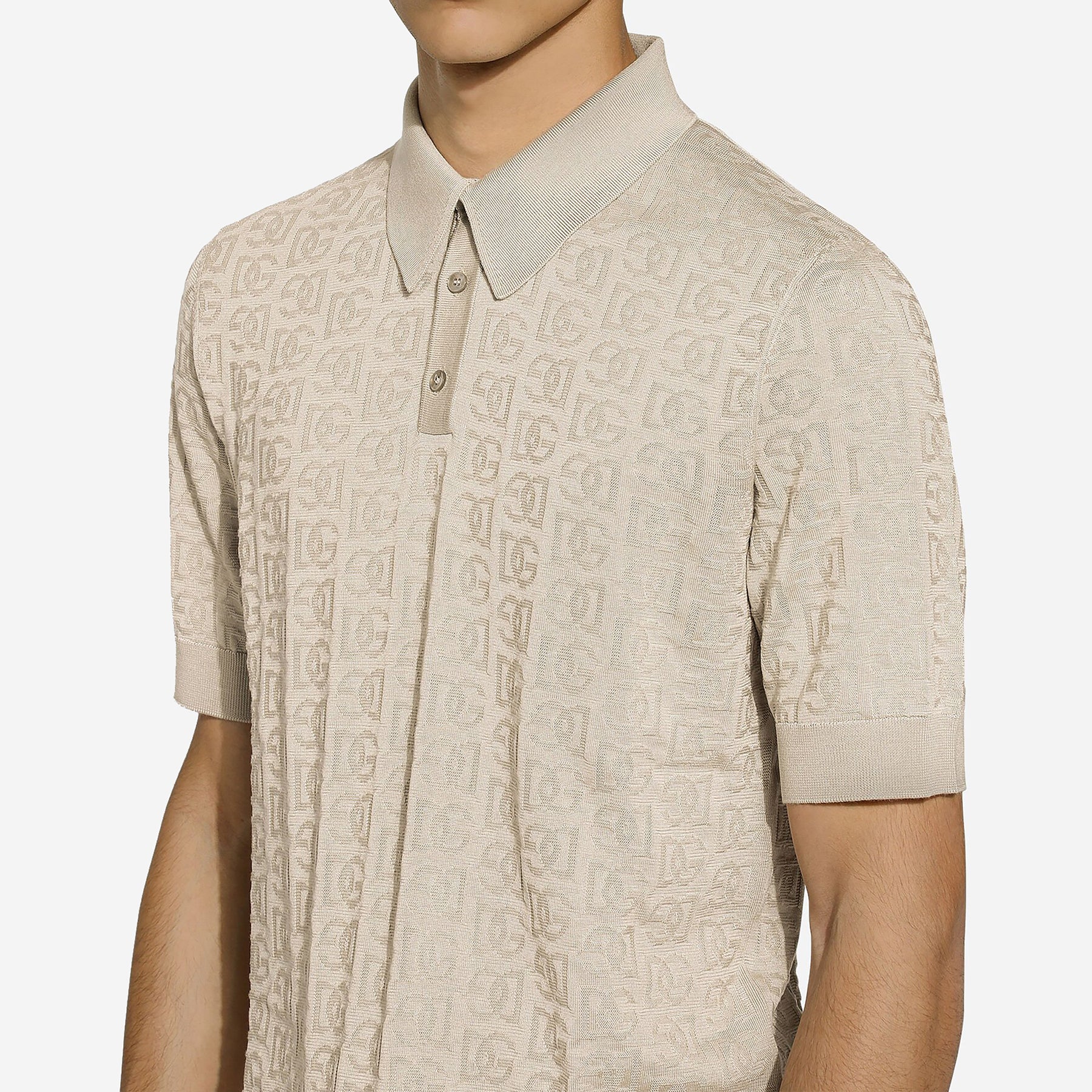 • Silk jacquard polo-shirt with all over DG logo