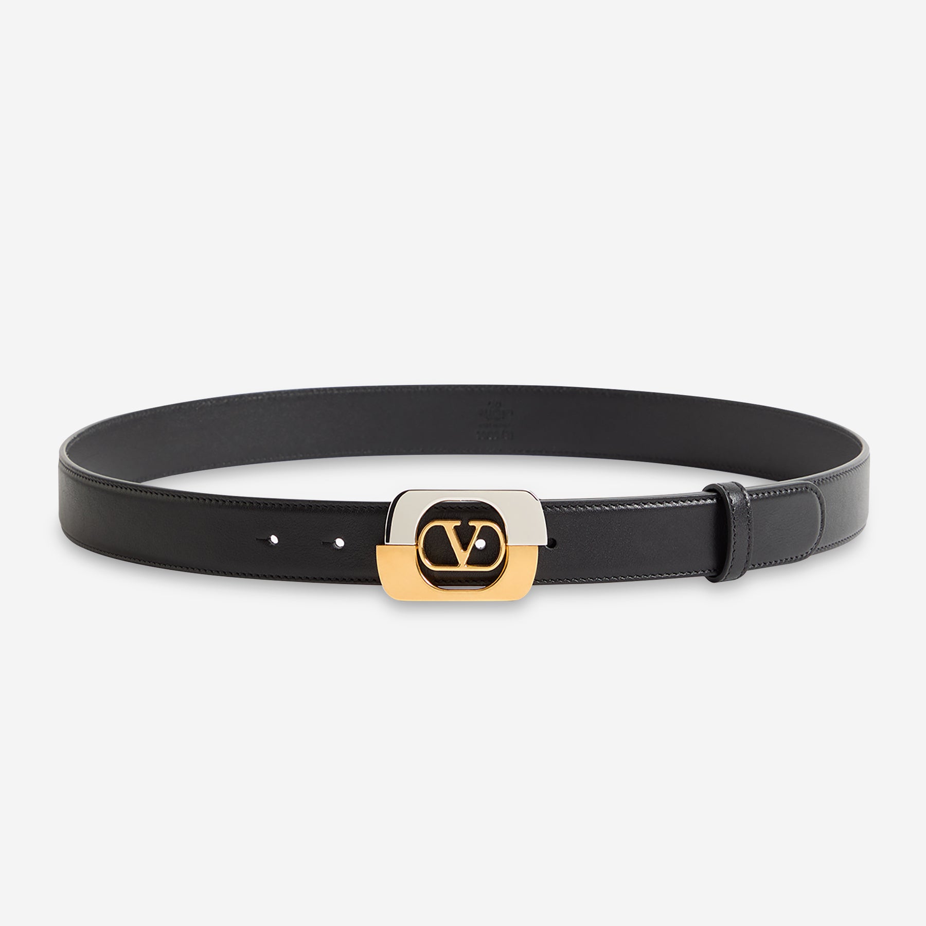 Two-tone VLogo Signature buckle with vintage brass and palladium finish
