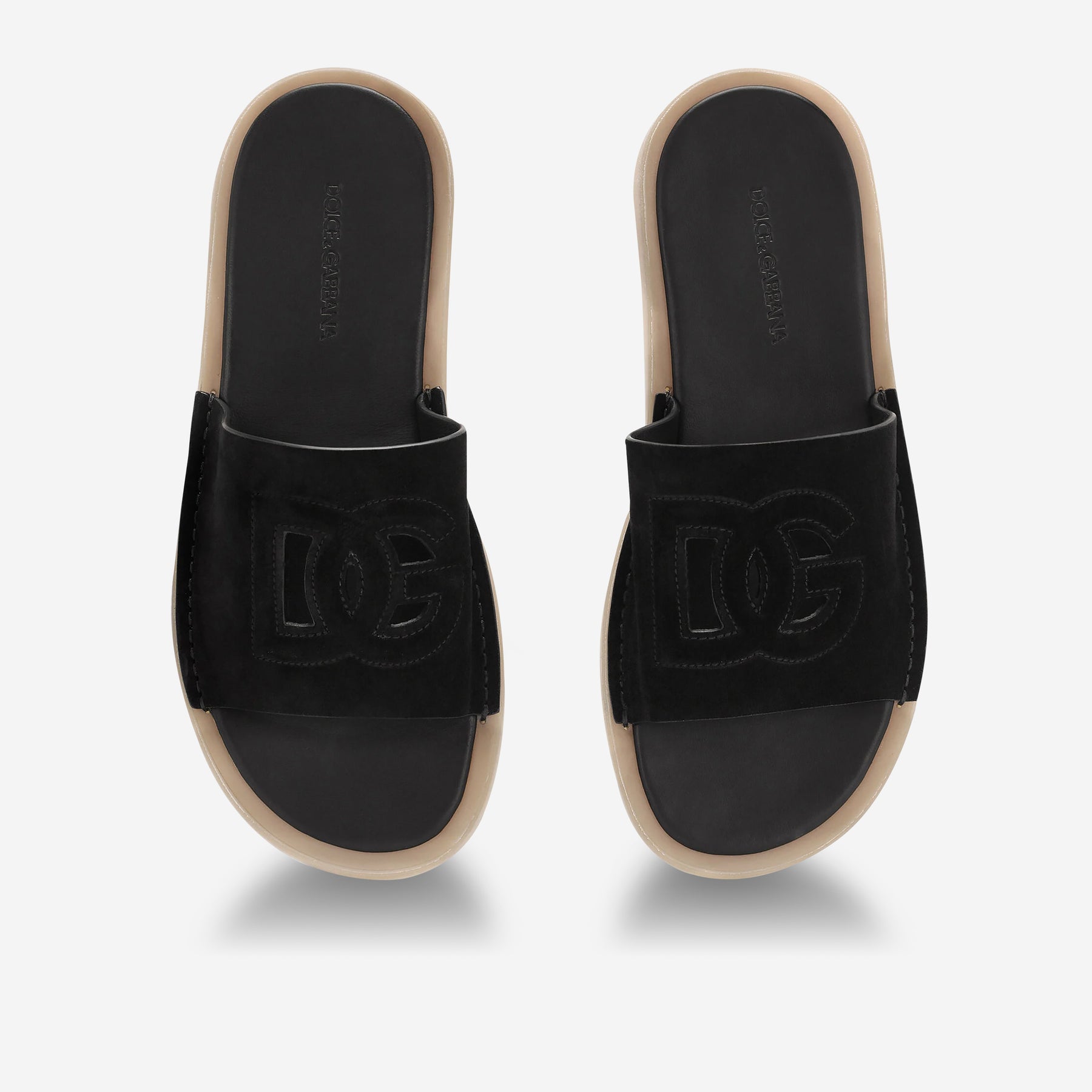 • Calfskin sliders with cut-out DG logo