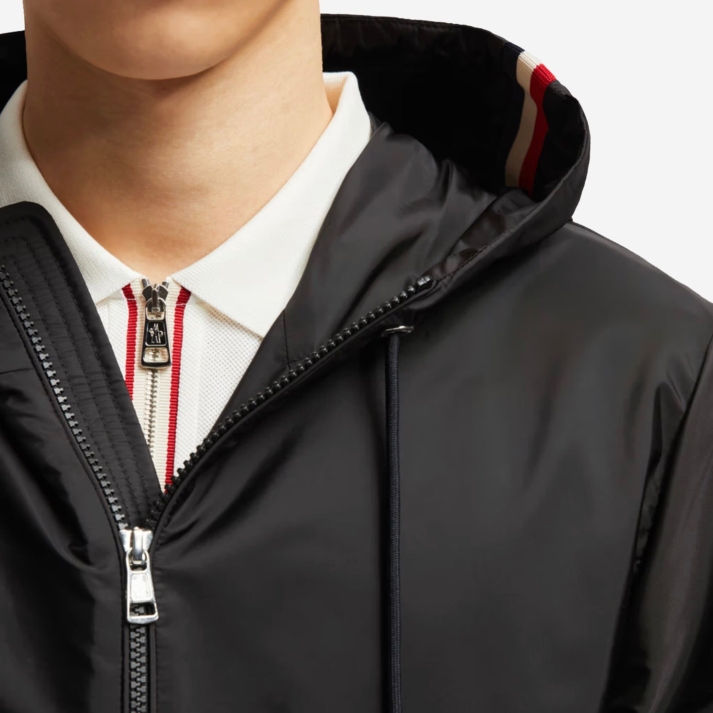 • Adjustable hood with tricolour trim