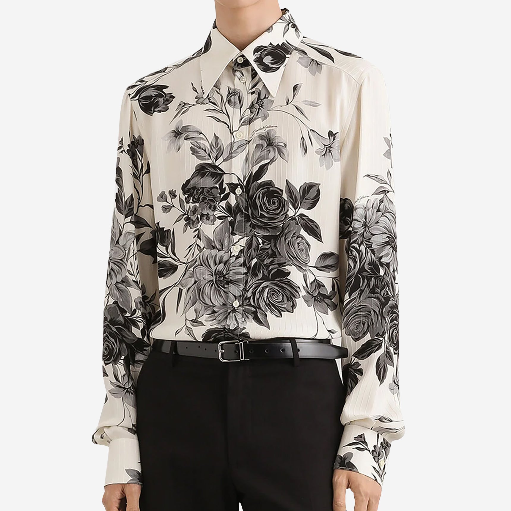 • Flower bouquet-print jacquard shirt