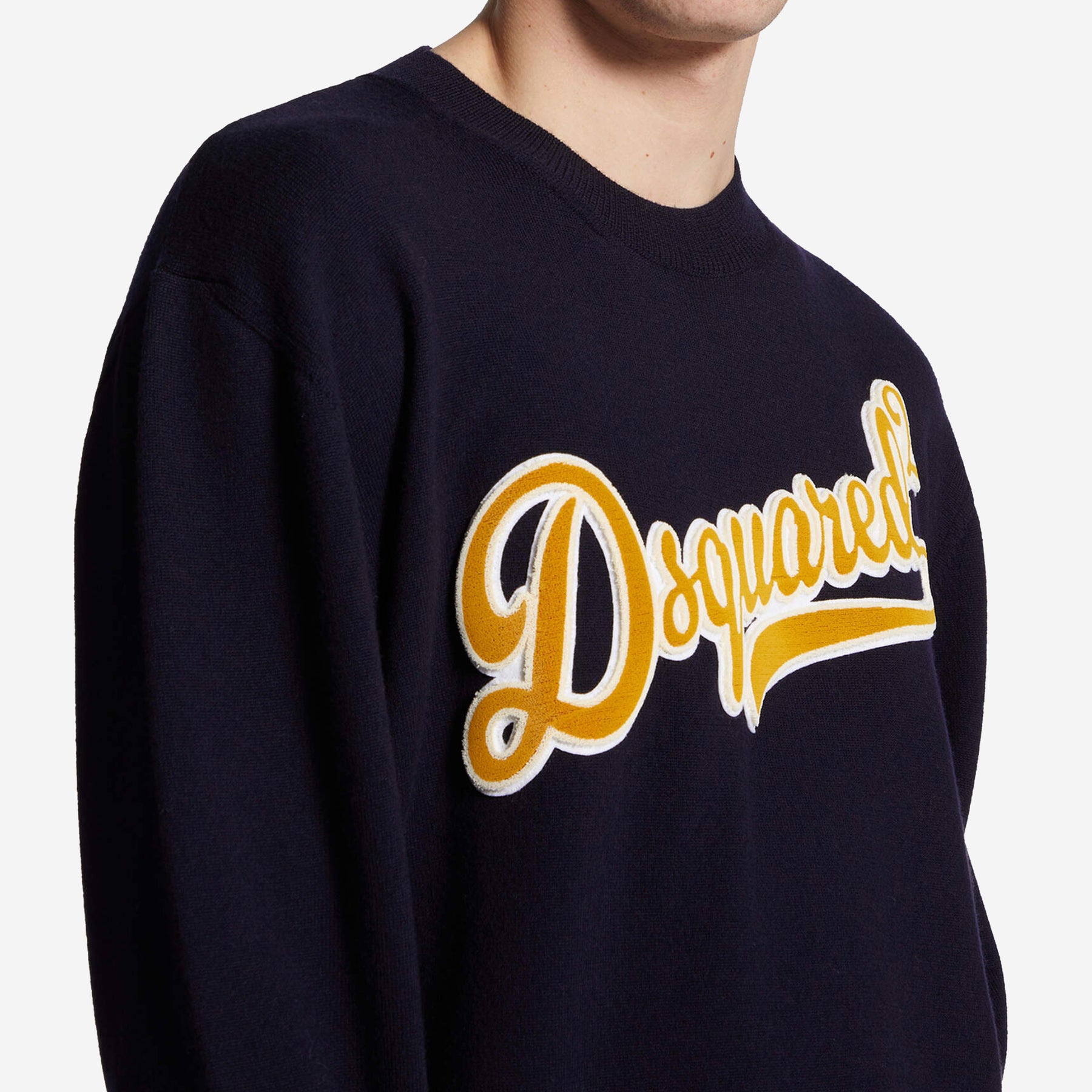 • Detailed with a spongy Dsquared2 patch on the chest