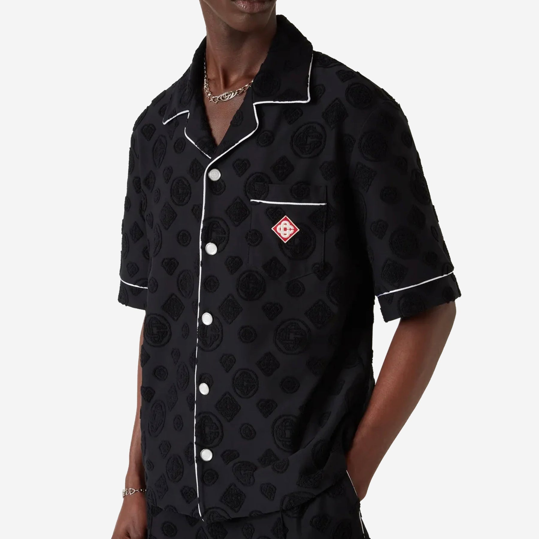 The towelling monogram short sleeve shirt is a design featuring the house's signature diamond monogram print