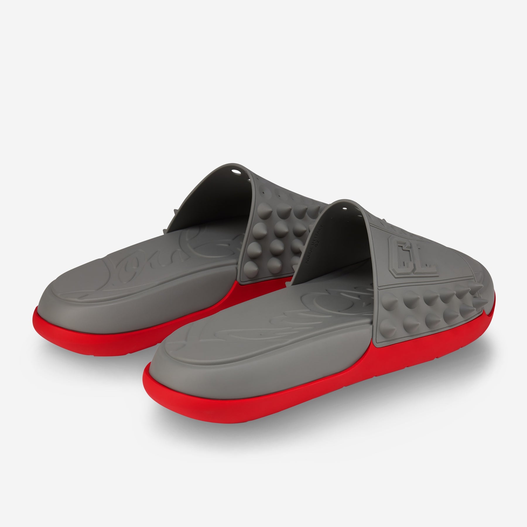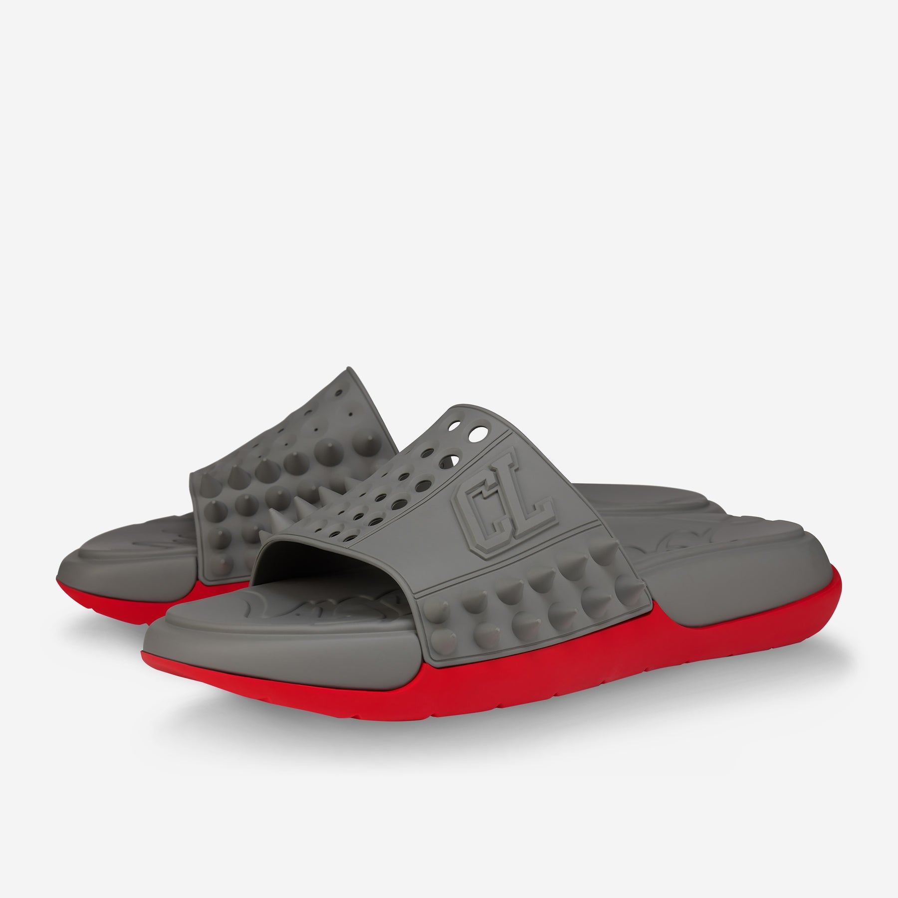 • Wide perforated strap dotted with signature tonal Maison Christian Louboutin spikes