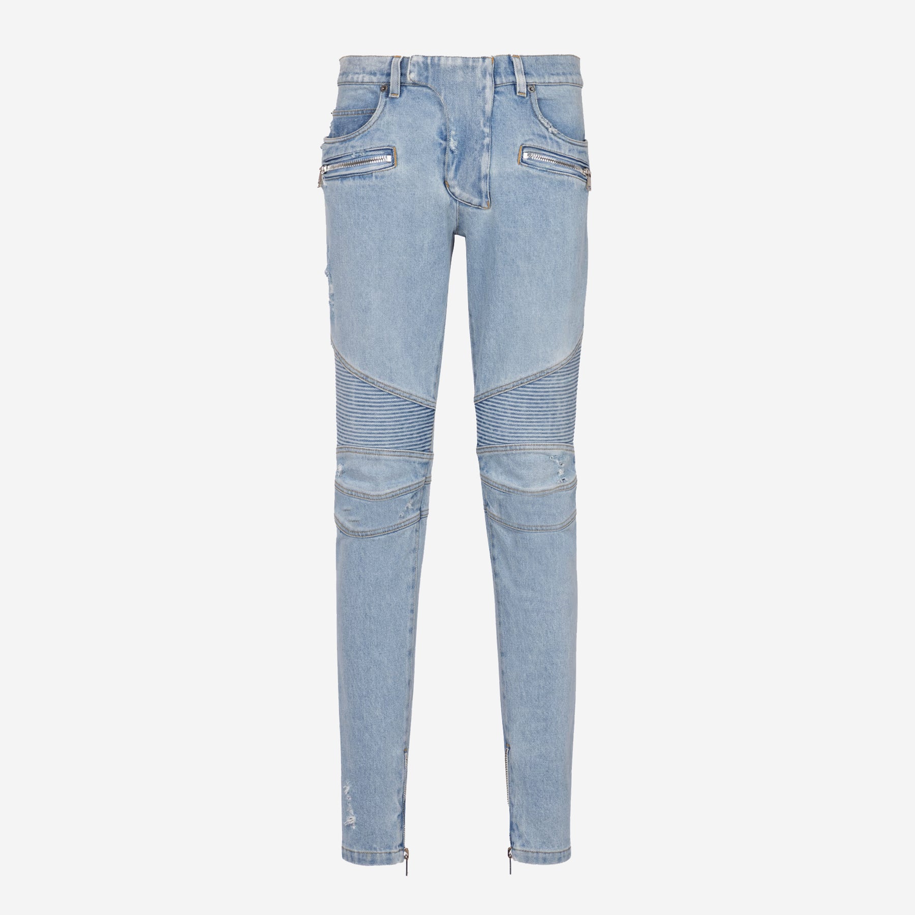 Balmain Skinny Light Blue Denim Biker Jeans