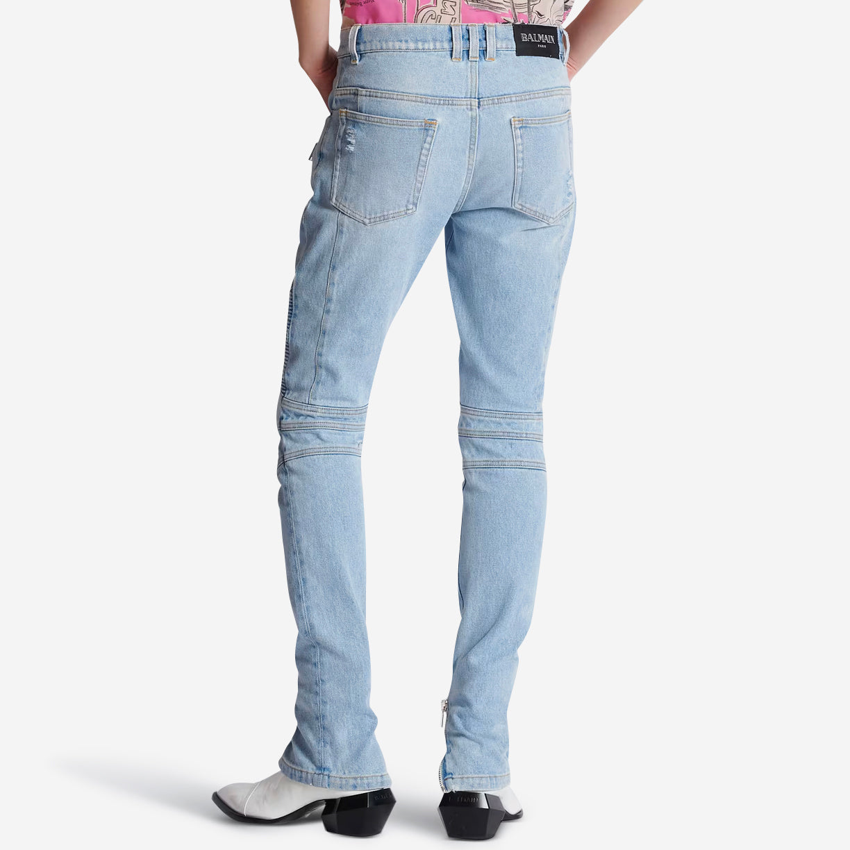 • Visible zip at the ankles, Balmain Paris-engraved slider