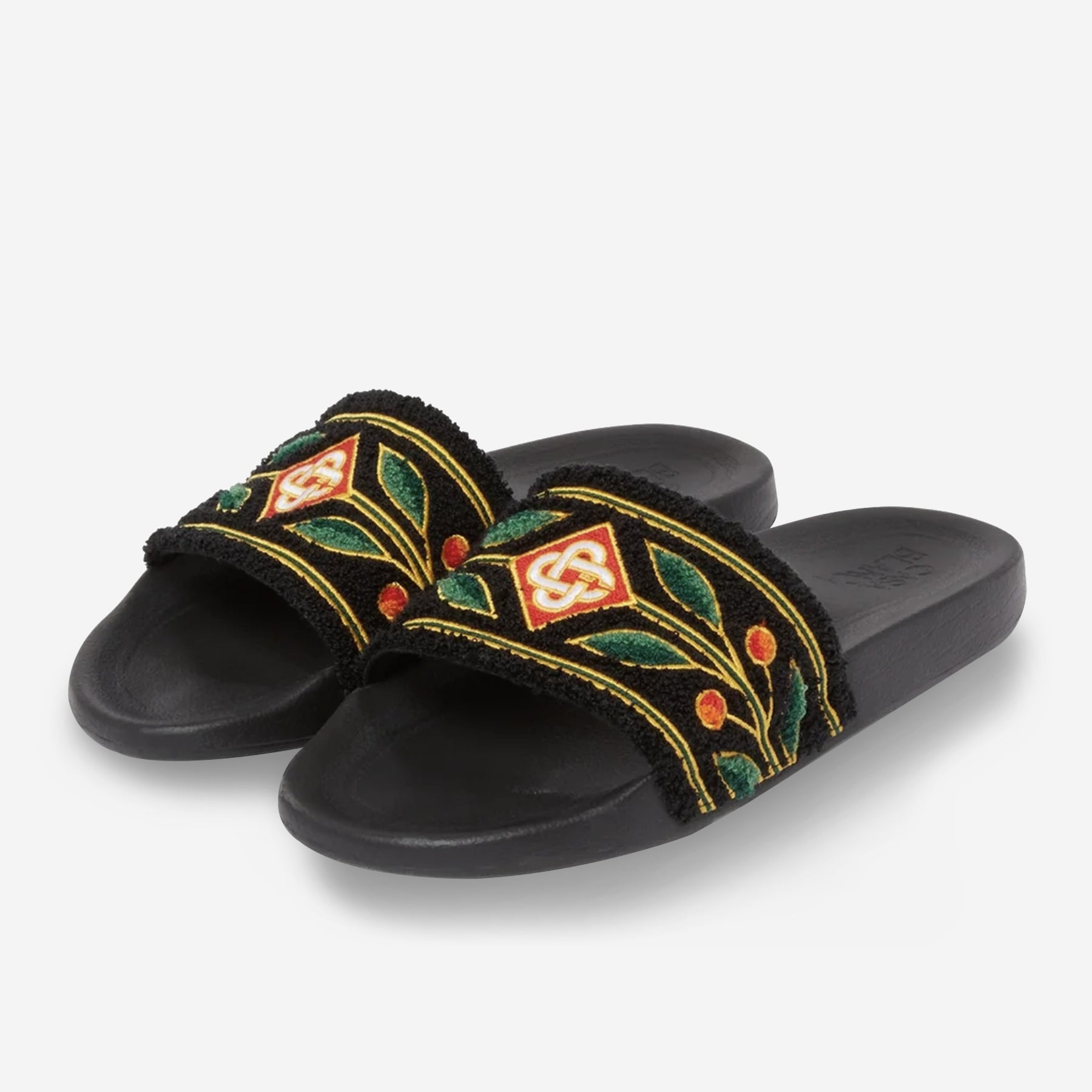 - The laurel terry sliders are crafted from an embroidered terry fabric