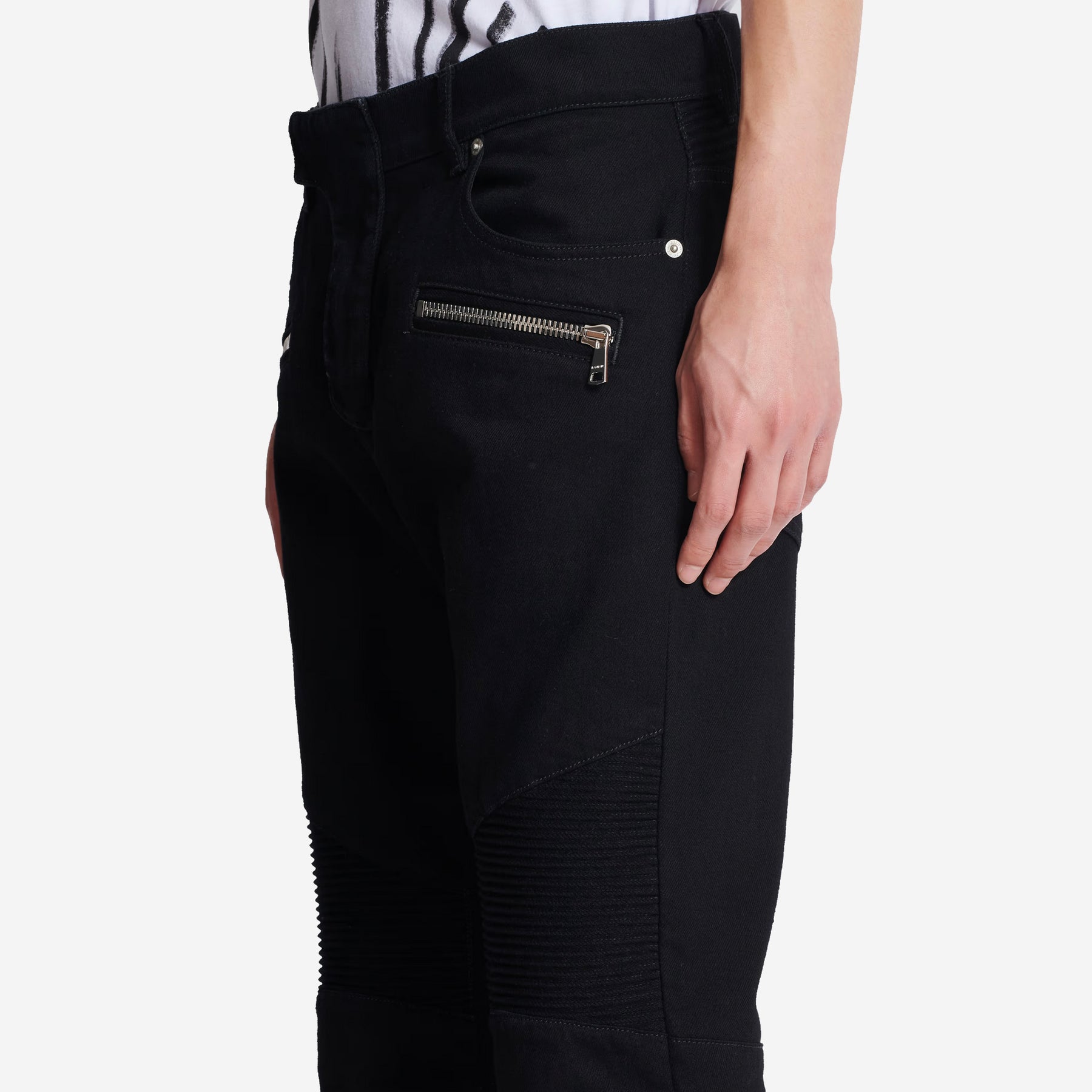 Balmain Slim-Fit Black Denim Biker Jeans