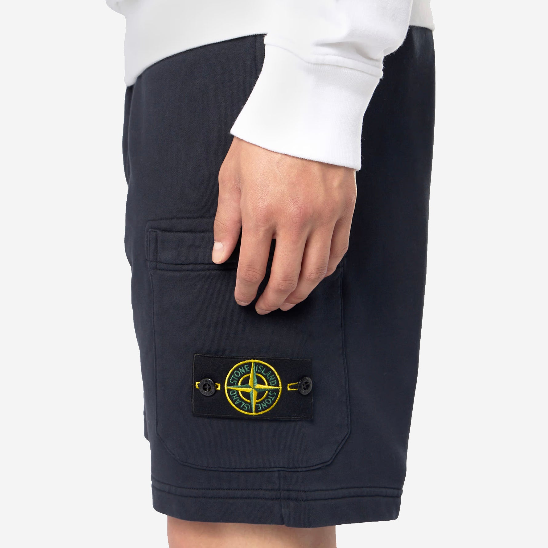 Large cargo pocket on left leg with logo patch