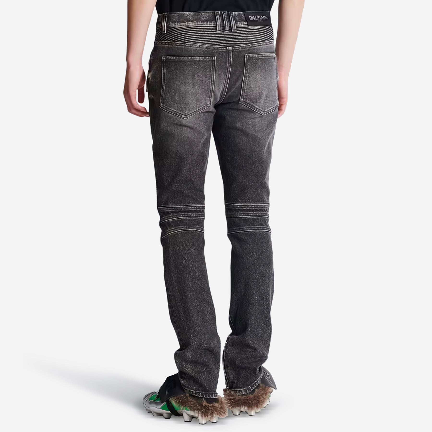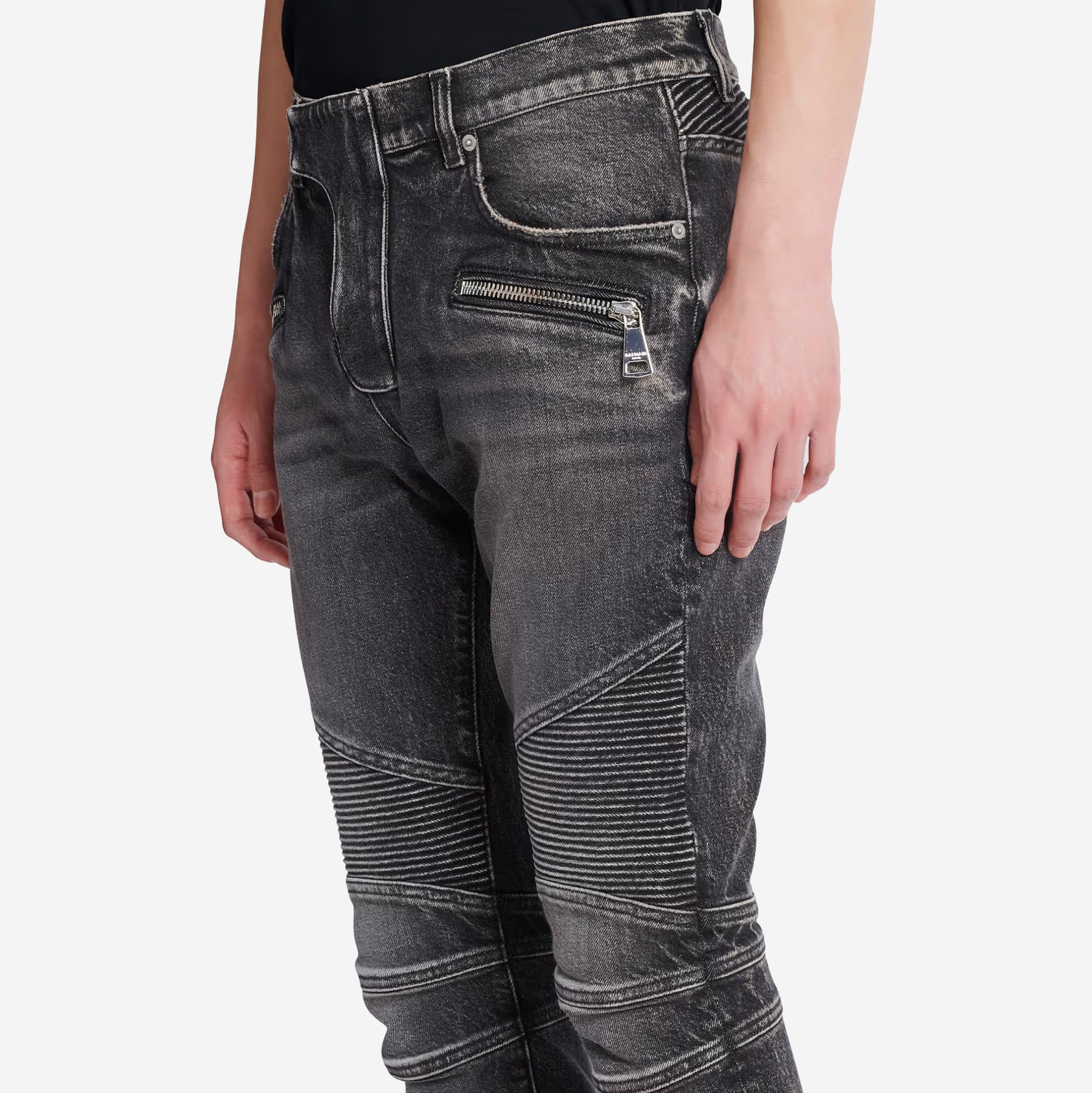 2 visible zip pockets, Balmain Paris-engraved slider