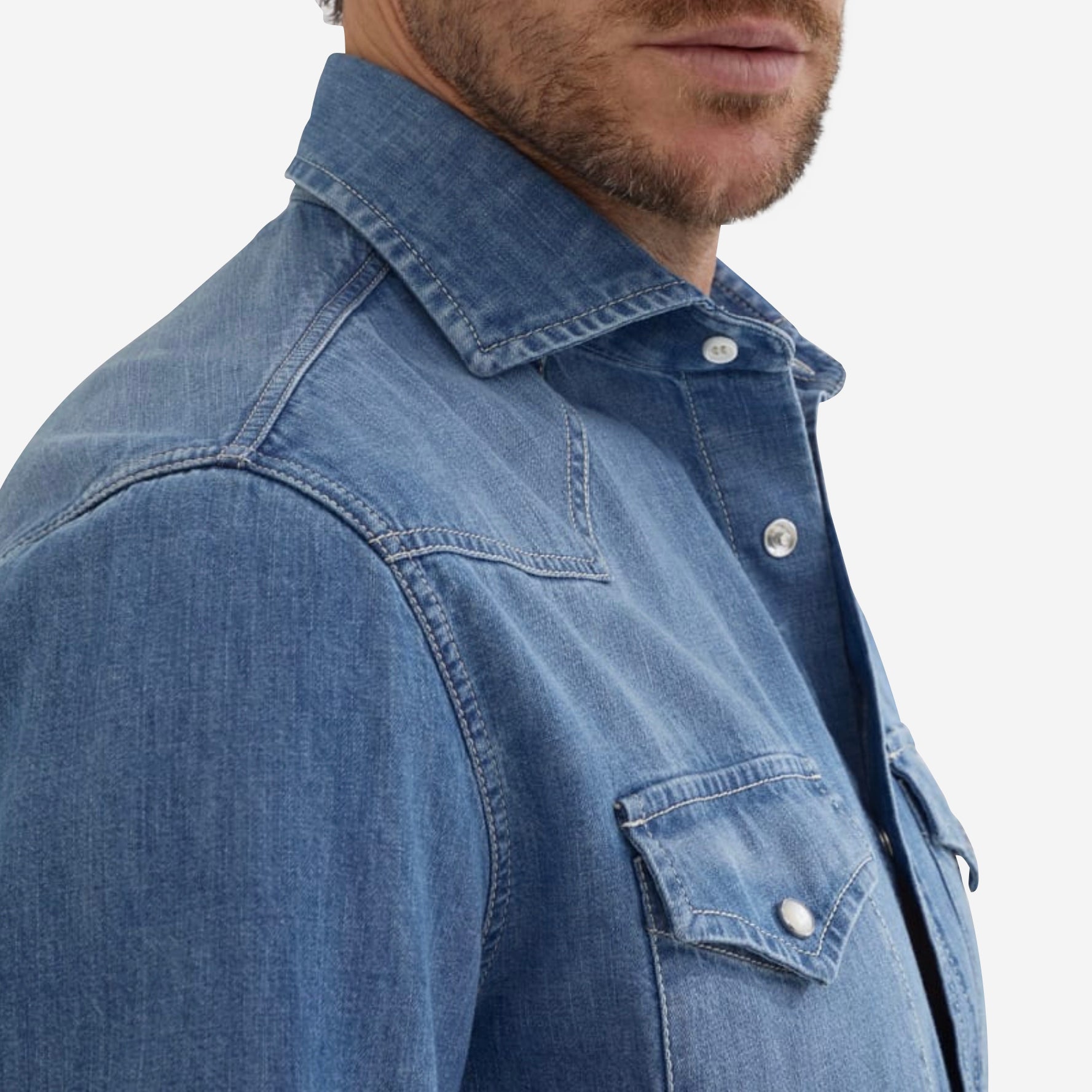 Brunello Cucinelli Lightweight Denim Easy Fit Western Shirt