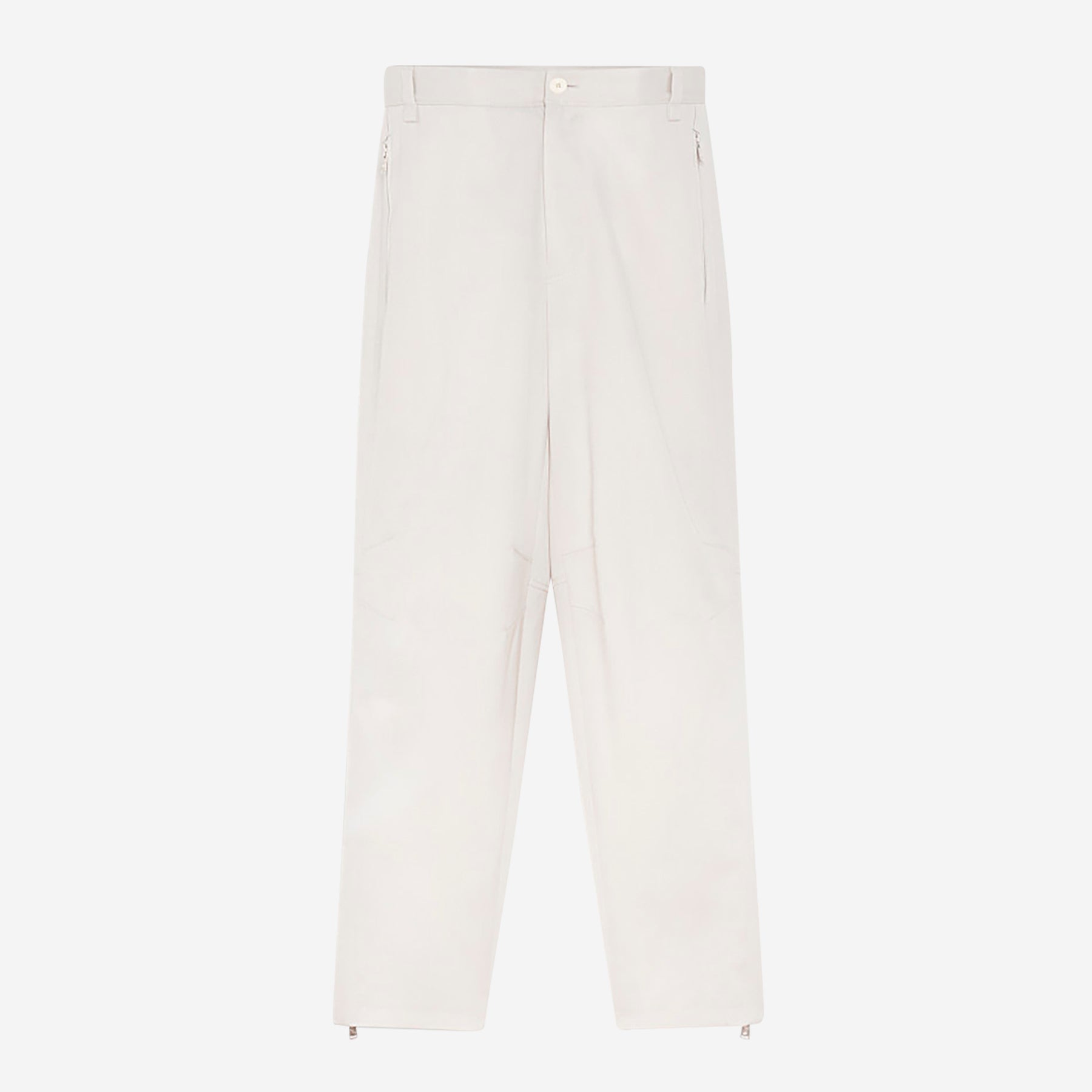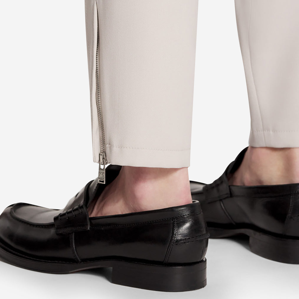 • Zipper detail on the side pockets and at the bottom of the leg
